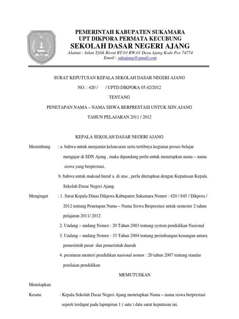 Contoh Sk Siswa Berprestasi Kelas Xii - Contoh Surat Keputusan Siswa Berprestasi Contoh Surat Terbaru 2020 : Rere sekarang duduk di kelas 10 di sma negeri 1 kota magelang.